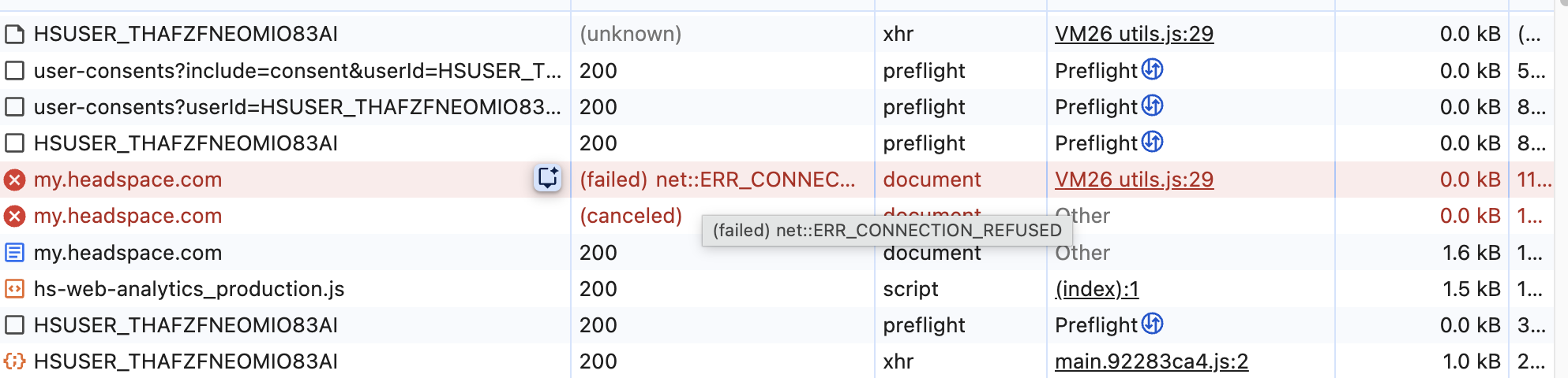 Tak update - dle ocekavani je vse na novem telefonu stejne. Doplnuji traceroute z Macbooku: traceroute to www.fio.cz (92.38.6.11), 64 hops max, 40 byte packets 1 192.168.0.1 (192.168.0.1) 15.294 ms 4.171 ms 5.388 ms 2 * * * 3 * * * 4 cst2-191-6.cust.vodafone.cz (31.30.191.6) 20.135 ms 20.170 ms 18.857 ms 5 cz-prg.p1sit-4hunge0-7-0-7.quantcom.cz (82.119.246.26) 20.369 ms 15.813 ms 18.440 ms 6 cz-prg-bbr5-be1.quantcom.cz (82.119.246.231) 14.369 ms 20.144 ms 20.290 ms 7 82.113.32.83 (82.113.32.83) 17.533 ms 20.120 ms 16.574 ms 8 82.113.52.92 (82.113.52.92) 20.730 ms !H * 22.362 ms !H traceroute to my.headspace.com (65.9.95.38), 64 hops max, 40 byte packets 1 192.168.0.1 (192.168.0.1) 4.378 ms 4.275 ms 4.376 ms 2 * * * 3 * * * 4 * * * 5 52.93.43.235 (52.93.43.235) 18.323 ms 52.93.43.233 (52.93.43.233) 18.170 ms 52.93.43.235 (52.93.43.235) 23.323 ms 6 * * * 7 * * * 8 * * * 9 * * * 10 * * * 11 server-65-9-95-38.prg50.r.cloudfront.net (65.9.95.38) 19.194 ms 22.108 ms 18.320 ms traceroute: Warning: headspace.com has multiple addresses; using 65.9.95.90 traceroute to headspace.com (65.9.95.90), 64 hops max, 40 byte packets 1 192.168.0.1 (192.168.0.1) 4.642 ms 3.713 ms 3.848 ms 2 * * * 3 * * * 4 * * * 5 52.93.43.235 (52.93.43.235) 23.676 ms 19.232 ms 52.93.43.237 (52.93.43.237) 20.742 ms 6 * * * 7 * * * 8 * * * 9 * * * 10 * * * 11 server-65-9-95-90.prg50.r.cloudfront.net (65.9.95.90) 29.874 ms 16.762 ms 19.249 ms KB vraci dle ocekavani odpoved !X. Jeste pridavam screenshot z Chrome dev tools kdyz request selze