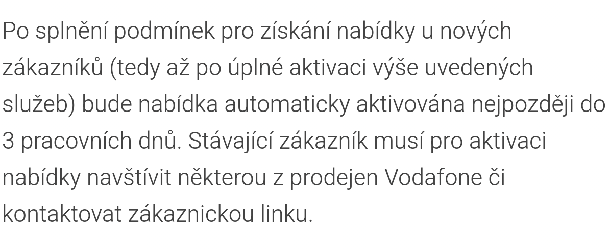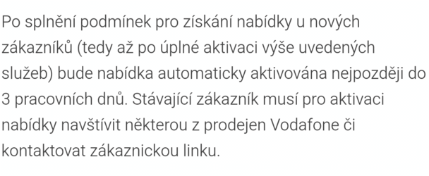 Má už někdo zkušenosti s novou nabídkou Giga kombo? Do stanovených celkových limitů plateb se započítávají i pronájmy zařízení jako stb k Vodafone tv+ a modem Vodafone Station k netu? Nebo je to součet čistě za služby bez pronájmu? 🤔🤔 Podmínky platí od 21.11. a další doplnění infa nikde ..... Stávající zákazník teda nedosáhne na program automaticky při splnění daných podmínek, ale musí si zažádat aktivně o "slevu" na pobočce nebo na infolince ?? (dle vydaných pravidel)...... jako opravdu?? nebo jsem něco přehlédl? 🤨 díky za info ( Ondra či Veronika ) ...nebo někdo jiný 🙂