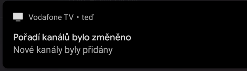 Taková notifikace mě chodí v mobilní aplikaci Vodafone TV, když tam dojde ke změně, přijde mně po otevření aplikace upozornění. Jinak je fajn že byla přidána slovenská Dvojka, ale v rámci přehlednosti by mohla být vedle Jednotky, ono je fakt kolikrát o nervy v těch malých černobílých ikonkách najít nějakou stanici, kor když nevím jaké logo ta stanice má.