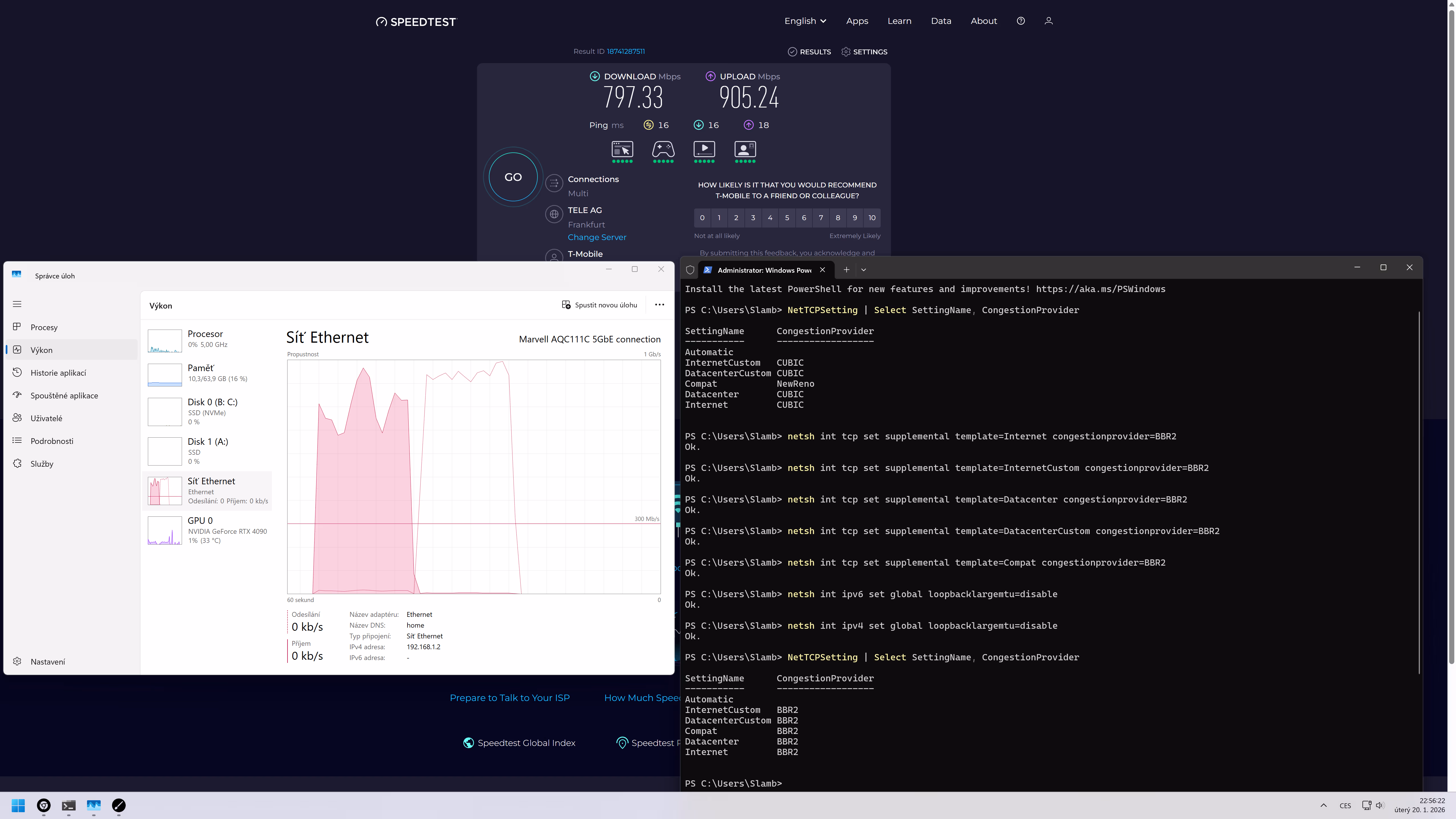 tak sem zkusil, co to udělá, ale že by to něco udělalo třeba v případě serveru tele ag ve frankfurtu, to se úplně říct nedá, přijde mi, že to nemá žádnej vliv 🤔 ale nemá to ani žádnej negativní vliv 😀 to spíš jestli to bude chtít zkusit vulva, kde ten upload u vodafonu je teda slabší 😐 na druhou stranu si ale řikám, že to stejně asi mít vliv nemůže, pokud máme oba windows a jednomu ten upload jede skoro naplno a druhýmu ne 🤔 bbr2