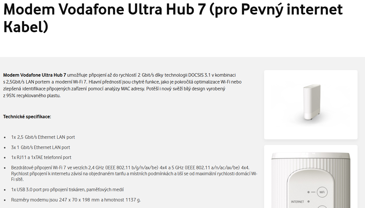 Třeba to bude zpřístupněno s FW, který povolí i změnu na bridge. No zřejmě by v tomto případě měl odpovědět někdo z Vodafone, proč na webu je uvedeno "1x USB 3.0 port pro připojení tiskáren, paměťových medií", ale pokud ano, jakým způsobem to funguje. Naštěstí jde o modem v pronájmu, tak vem čert. I když zase takový BYOD z Německa či odkud by měl jistě všechny funkce dostupné. Takhle v pronájmu se maximálně vymění za jiný model, nebo se počká, pokud budou funkce USB uvolněny v nějaké z následujících verzí FW.