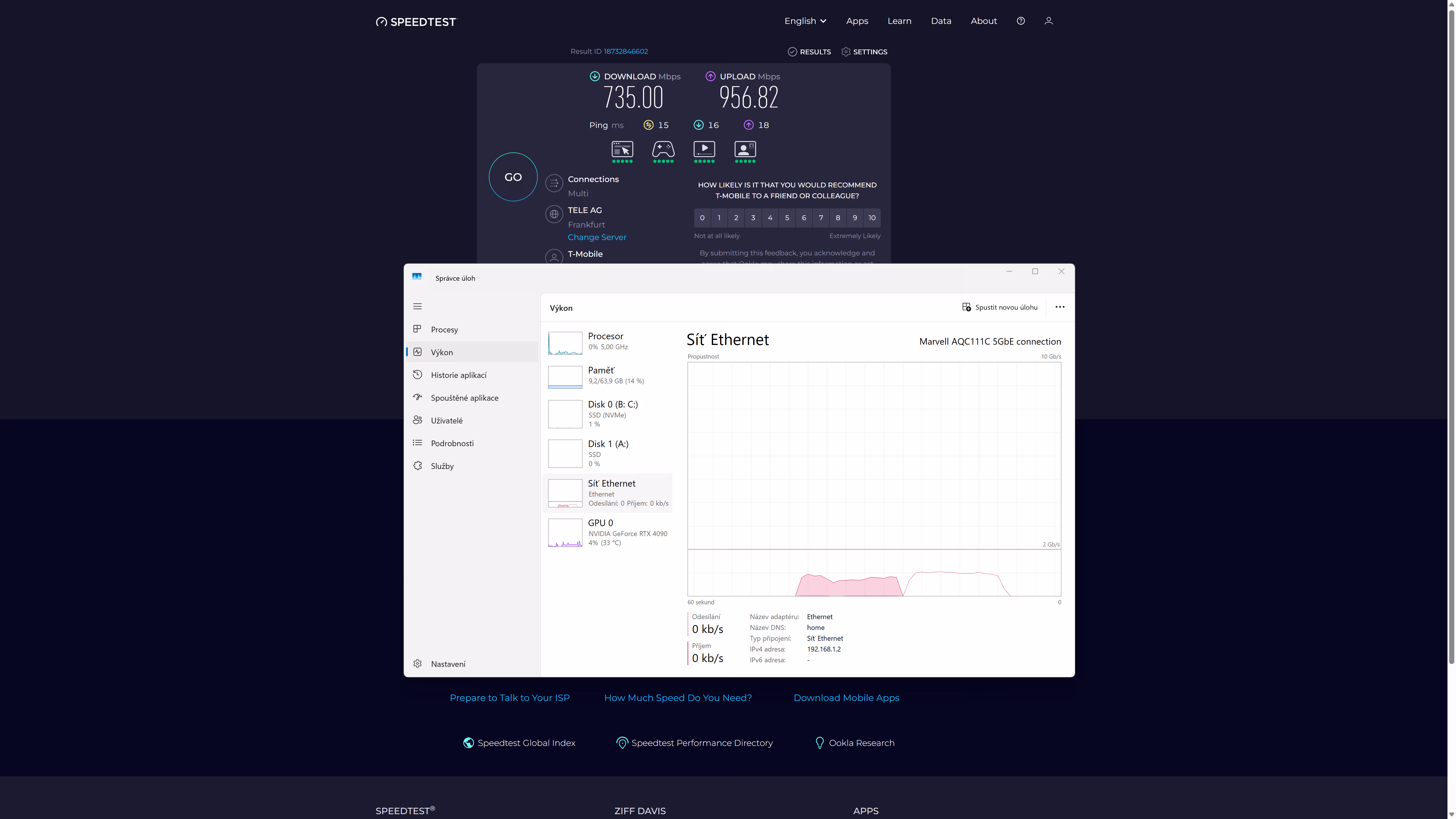 stejnej server, stejnej čas, tmobile 🙄🤐 a pro úplnost a pro jistotu - třeba na server o2 žádnej problém 🤔 ale třeba pranet nemá přímý spojení a neni ani v nixu - jenom v peering.cz, takže tmobile to zase tlačí přes arelion s poloviční rychlostí 🙄 @Vulva když tak ještě zkus ten pranet v praze 🤔 tm do o2 a pranet