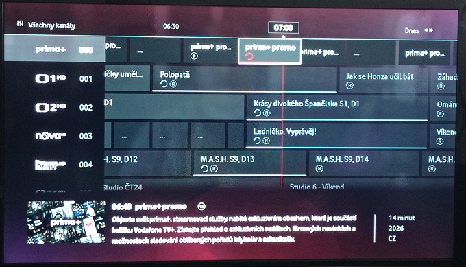 Tak ani prd, vše odpojeno, ponecháno, zapnuto a stav je stejný. VTV jede ale jediné, co lze spustit, je Promo Prima+ TV kanály vidím, ale když jakýkoliv spustím, tak je pouze tma jako by tam chyběl ten signál (jak u živého vysílání, tak i zpětném i videotéka) Zkusím ještě továrko a pak už nevím. S tím VF je opravdu jako s jediným, věčný problém. Nepomohl ani reset zařízení, ani vyzkoušení WiFi, hotspotu, vynulování nastavení, dat, cache VTV, pomohlo až úplné tovární nastavení. Prostě netuším, co zas jako jedinému, tomu VTV vadilo. Tak jsem zvědav, na jak dlouho to pojede.