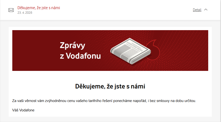 Potvrzuji stálost problému. Přišla nová zpráva - "Navyšujeme datový limit pro roaming" a opět ji přečtu, přesune se do přečtených a když se časem přihlásím znovu, svítí jako nepřečtená. Je vůbec správně, že tato informace chodí i klientům bez SIM služeb? Jen TV a koax internet?