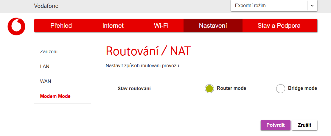 Ahoj. Som na byte kde je vyššie uvedený modem. Chcel by som používať vlastný router. Ako prepnem TG3442DE na bridge mode, prosím? Neviem sa k tomu nastaveniu prepracovať ani v expert móde. Diky.