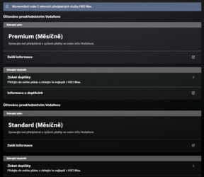 Ahoj, tak mi volali z Vodafone, a je tu jedna oficiální cesta, která pomůže a je nejrychlejší, přes HBO se to nedaří dořešit. Nejrychlejší možnost e den před obnovou zrušit předplatné a druhý den aktivovat již premium verzi, ta se následně již propíše v pořádku. Mám to přímo od technické podpory.