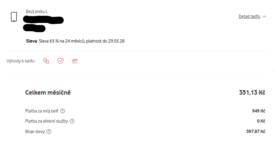 nyní vyjednáno pro tetu na retenci na 2 čísla BezLimitu L (15 Mb/s) za 351 Kč na 24 měsíců (63% na 24M), nově jsou vyšší slevy jen na 2 roky a máme si pak případně zavolat a koukneme na aktuální slevy