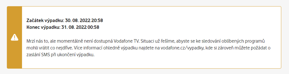 @Marek-26to máš pravdu , ale je smutný, že se to dozvím na lince ale na https://www.vodafone.cz/vypadky/#fromUPC není ani zmíňka