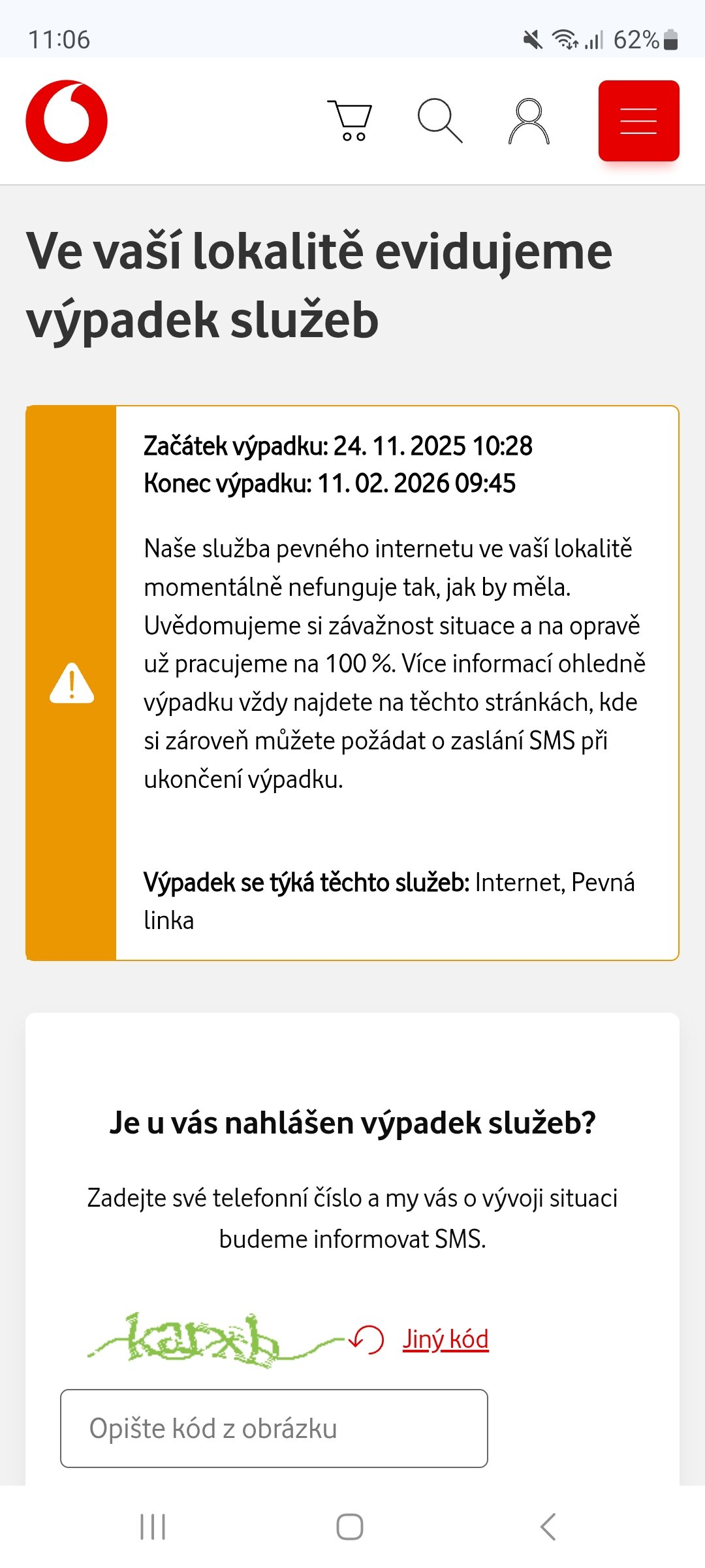 "Vím, že je hlášený přetržený optický kabel, ale trvá to už 4 měsíce. Test ID 11401851501 ukazuje 6,7% Packet Loss. Je k dispozici nějaké náhradní řešení (např. LTE modem dočasně zdarma), nebo mám rovnou podat podnět na ČTÚ pro neplnění smlouvy?" To je neuvěřitelný přístup Vodafone.