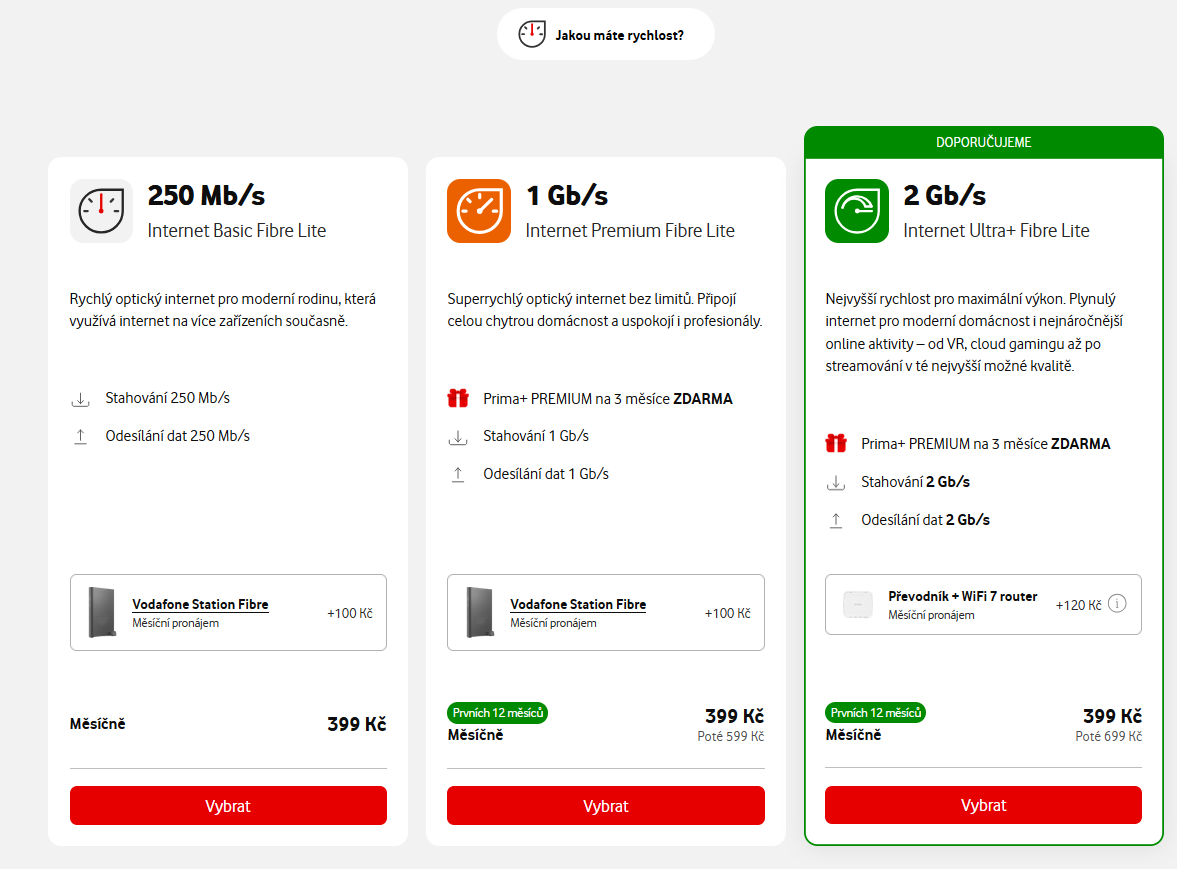 Zdravím , my máme Optiku od Vodafonu / T-Mobile od Cetinu máme dostupný pouze DSL