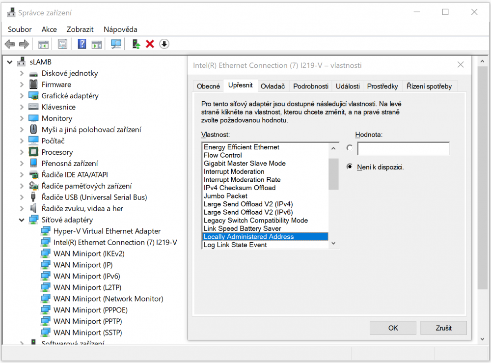 jestli to něčemu pomůže, tohle nastavení používám já a funguje bez problémů 🤔 ARP Offload : Disabled Downshift retries : Disabled Energy-Effiecent Ethernet : Disabled Flow Control : Disabled Interrupt Moderation : Disabled Interrupt Moderation Rate : Off IPv4 Checksum Offload : Disabled Jumbo Packet : Disabled Large Send Offload V1 (IPv4) : Disabled Large Send Offload V2 (IPv4) : Disabled Large Send Offload V2 (IPv6) : Disabled Link Speed : Auto Negotiation Locally Administered Address : Not Present Log Link State Event : Disabled Maximum number of RSS Queues : 8 Queues NS Offload : Disabled Priority & VLAN : Priority & VLAN Enabled Recieve Buffers : 4096 Recieve Side Scaling : Enabled Recv Segment Coalescing (IPv4) : Disabled Recv Segment Coalescing (IPv4) : Disabled TCP/UDP Checksum Offload (IPv4) : Disabled TCP/UDP Checksum Offload (IPv6) : Disabled Transmit Buffers : 8184 VLAN ID : 0 VLAN Monitor mode : Disabled Wait for Link : Auto Detect Wake from power off state : Enabled Wake on Link : Disabled Wake on Magic Packet : Enabled Wake on Pattern Match : Disabled Wake on Ping : Disabled něco se určitě bude lišit, ale dost věcí by se mohlo shodovat, síťovku mám marvell, primární (8.8.8.8) a sekundární (1.1.1.1) dns mám nastavený v ont, na speedtest.net z toho leze tohle