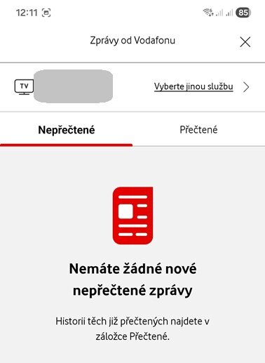 Nepřečtené zprávy v Můj Vodafone+ nahlášeno jako INC04009203