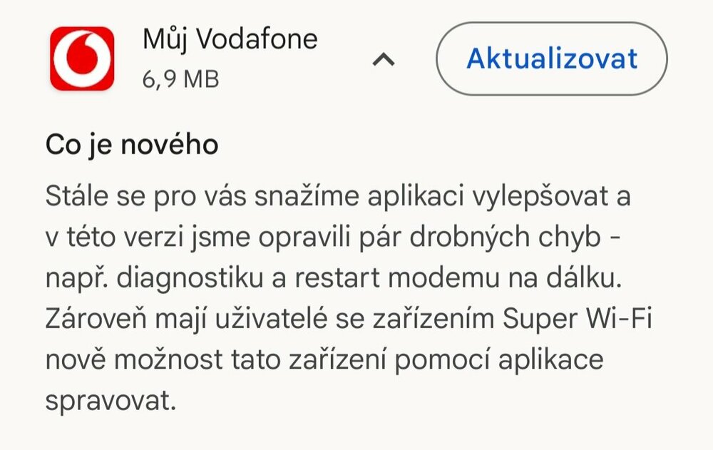 Android 14 a app Můj Vodafone v5.25.0 a jsem tam napoprvé.