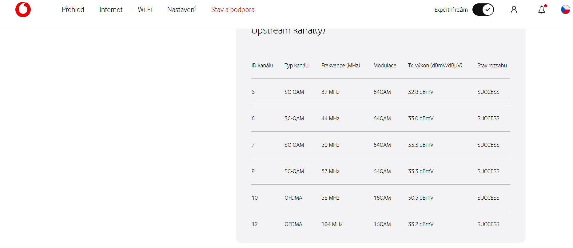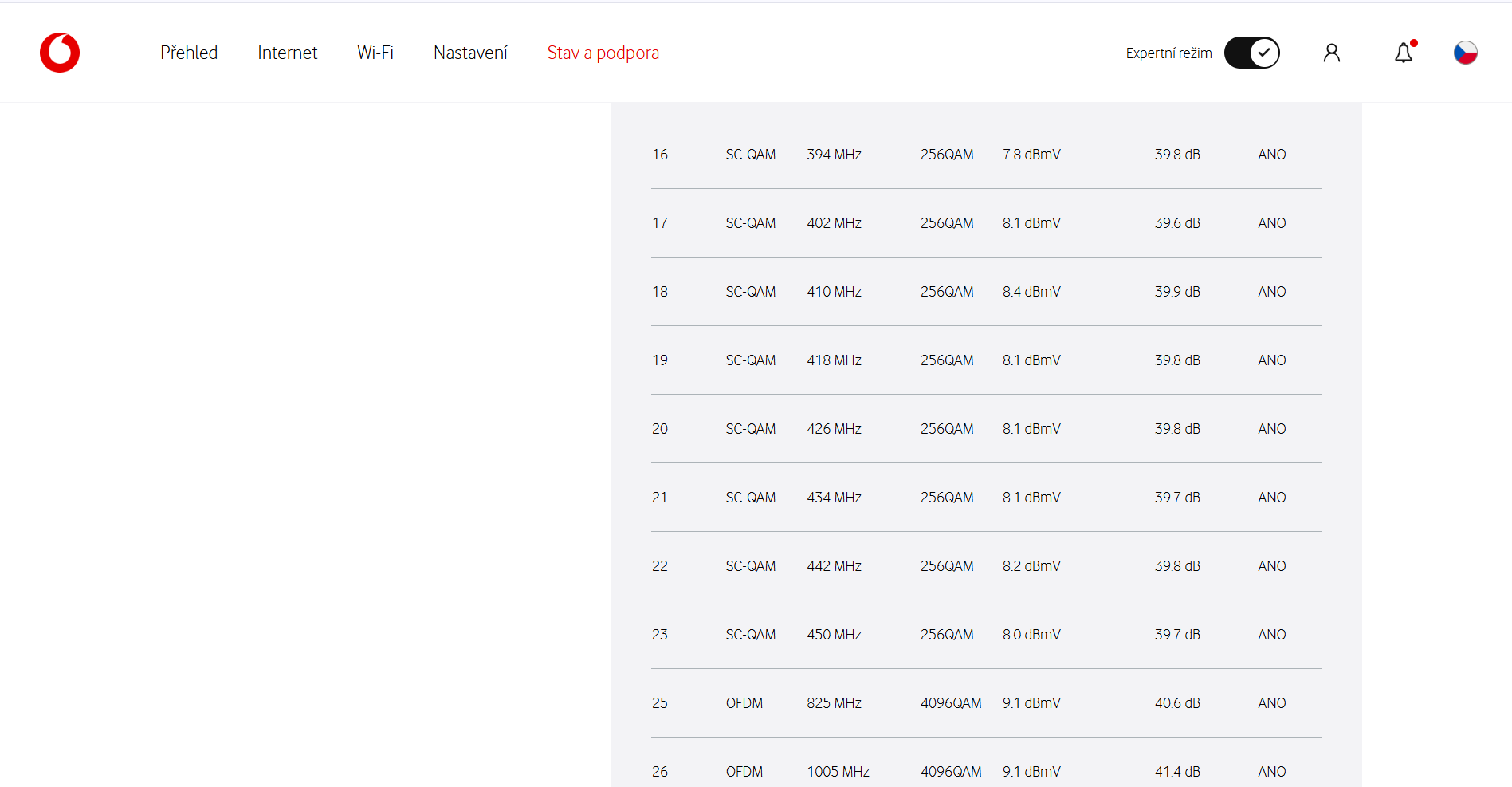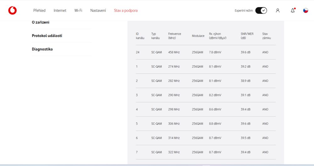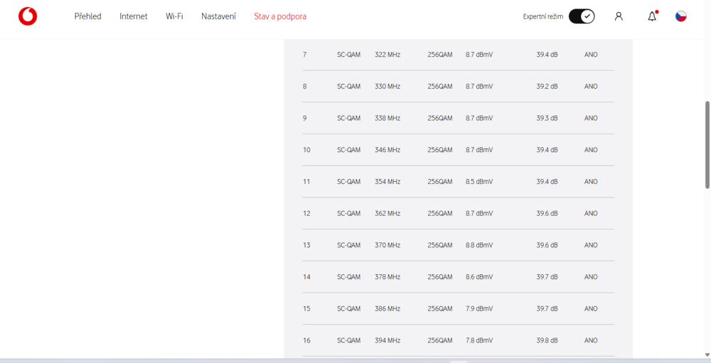 internet zatím funguje dobře .Ale je zajímavé každý týden , se ty hodnoty snižují. jen by mě zajímalo ,jaké má kdo hodnoty . Posílál jsem to na Vodafone ,ale nějak to nekomentují . .Jestli to mám vůbec nějak řešit s Vodafone.