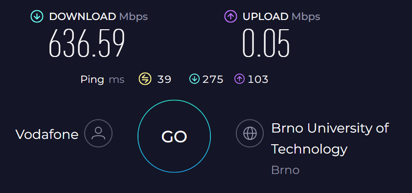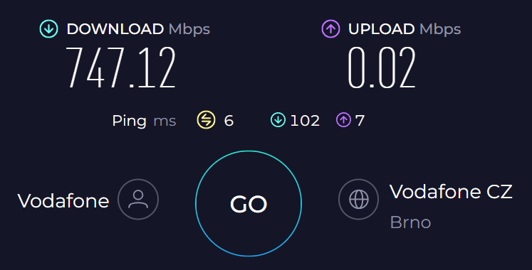 OK, zkusim zavolat na VF a uvidime co se bude dit. Downstream jede prakticky krasnym Gbitem, upstream slabymi 3 Mbit a hure.