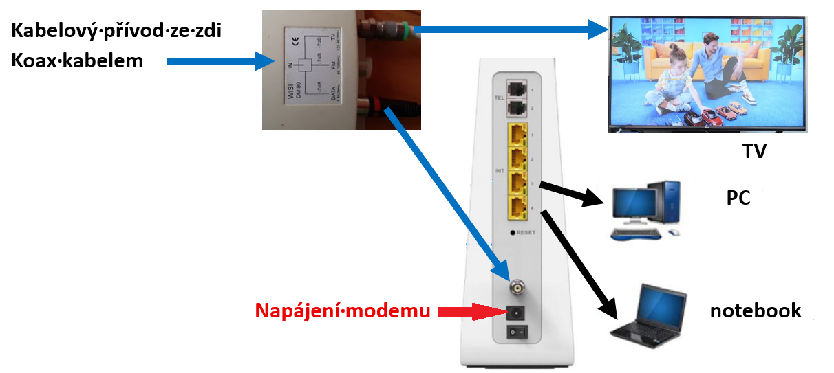 Připojení TV + Modem koax