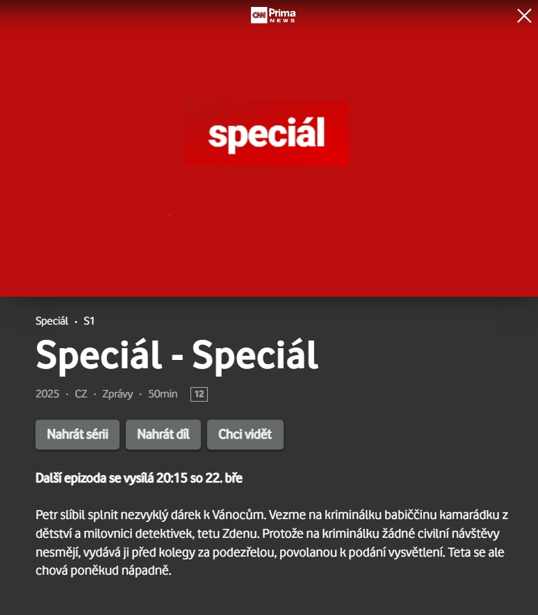 Odesláno 22. března22. břez Dnes se EPG povedlo. Prima cnn news a u toho popisek seriálu Specialisté co je na Nově. Speciál nebo Specialisté je to podobný.😀Nestěžuju si, jen pro pousmátí. Víc mi vadí ta minulá změna vzhedu menu na stb co se už řešit nebude, jen se slibovalo... Super Basic Základní, Sport Vodafone Station WiFi 6, Vodafone TV 3 box Teplice