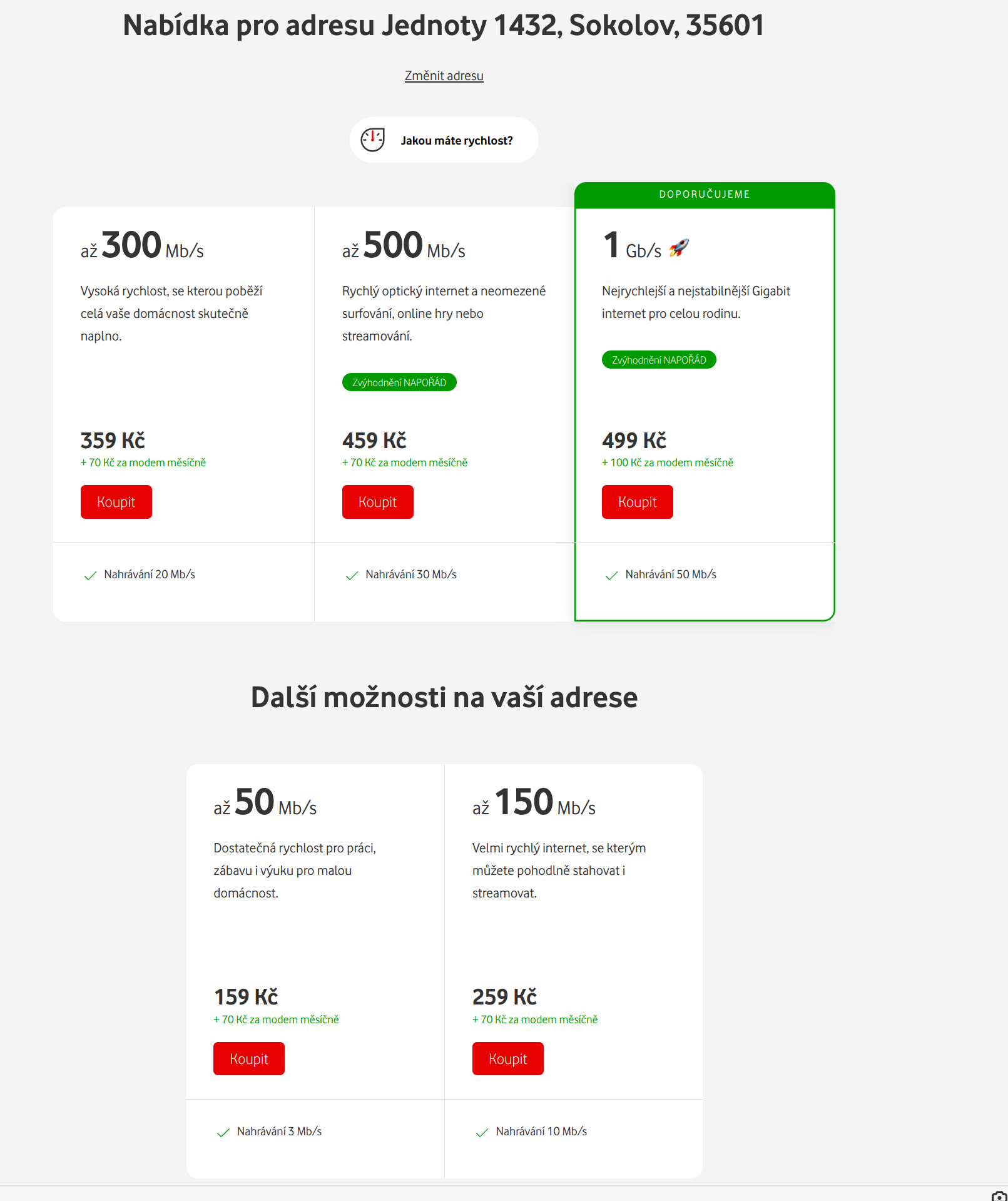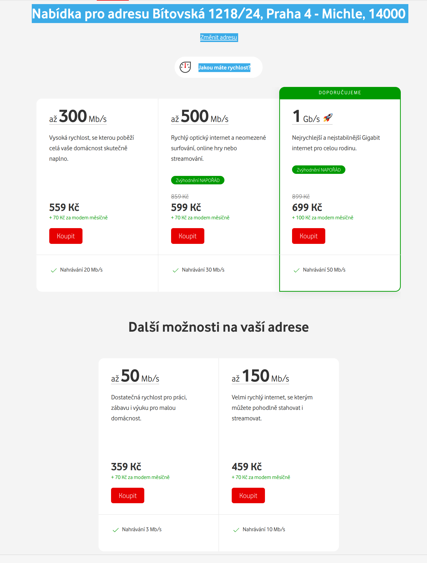 V tom případě asi má UPC dost slabé informace o konkurenci. My v domě máme možnost optických přípojek, ale žádné slevy tu Vodafone nenabízí. Já ten svůj levný tarif tehdy získal, protože se mi povedlo přesvědčit Vodafone, že bydlím v Ostravě. Lépe řečeno jsem tehdy nějak obešel geolokaci, vyplnil žádost o internet od UPC s pražskou adresou na nějaký web se speciální nabídkou pro Ostravu, a i když se nejdříve cukali, že to je jen pro Ostravu, když jsem si zřízení služby začal rozmýšlet, nakonec mi to dali.