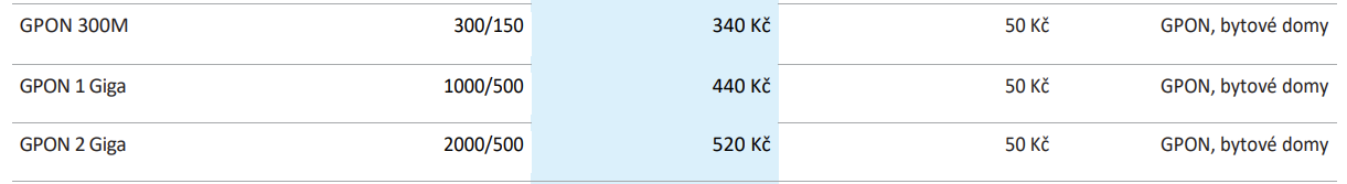 Přesně tak, je to jenom o konkurenci. Třeba taková PODA dělá to stejné, nedávno jsem na jedné adrese našel u schránek leták s připojením na GPON 1000/300 za 250 Kč měsíčně + 50 Kč za pronájem modemu (případně dle ceníku ještě + 80 Kč za veřejnou IPv4 - zajímavé ovšem je, že v ceníku ten tarif 1000/300 vůbec není, je tam 1000/500, no možná tisková chyba), a to jenom proto, že v baráku je kabelovka Vodafone, Nej.cz a Cetin (xDSL).
