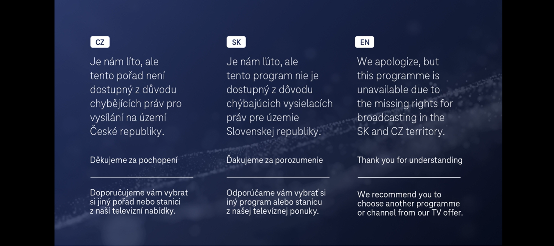 Odesláno 9. března 2024 1 rok no v tydnu mi to fungovalo taky, ale ted ho nemuzu najit , taky mam TV + cam , muzes to zkusit ? ted Super 500 Mb/s - Komfort Compal bilý brno
