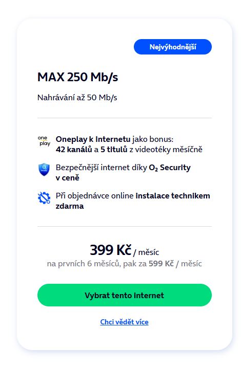 Včera ráno jsme odeslal email na obchodního zástupce vodafone a to : Jitka.Checova@vodafone.com s žádostí aby mi prověřila zda můj současný modem zvládne vyšší rychlost, který z nabízených modemů v eshopu vodafone je určen pro rychlost 1000 a který pro rychlost 2,5GB a požadal jí aby na naší adrese prověřila zda je tam možnost optického internetu. Stejný dotaz jsem odeslal na helpdesk a stejná odezva: NIC. Včera odpoledne jsem odeslal dotaz na internet a televizi no T-MOBILE, PECKA.TV, O2, Telly.TV a odpověď od těchto s nabídkou jsem obdržel OKAMŽITĚ. Co se to s Vodafone děje? Nekončí náhodou? Tomu by to odpovídalo. Tohle je tragedie. Jakmile mi jmenovaní vyřeší jak technicky odstřihnout koaxiální kabel vodafone a natáhnout do bytu optiku tak PÁPÁ VODAFONE.