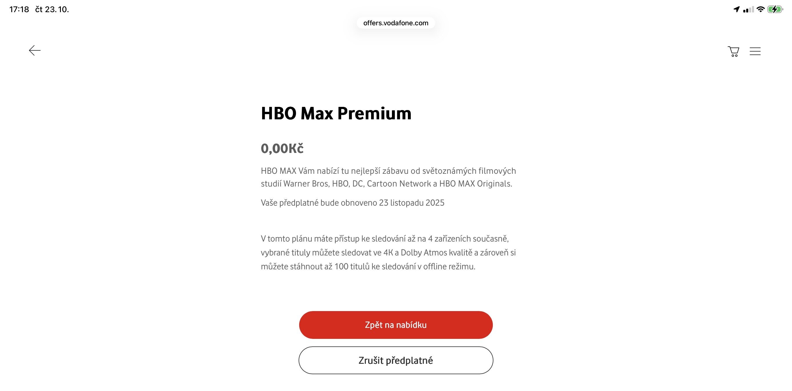 Odesláno před 3 hodinami3 hod Tedy už jsem si myslel, že to nenajdu, ale nakonec našel 😄Dobrej tah, tohle se jim povedlo.Jak rychle se to promítne? Koukal jsem do HBO a tam mi pořád svítí Standard. Upraveno před 3 hodinami 3 hod uživatelem CableG Premium+ Profi - ALLinONE Vodafone Station WiFi 5, Vodafone TV app, CA modul Praha 6